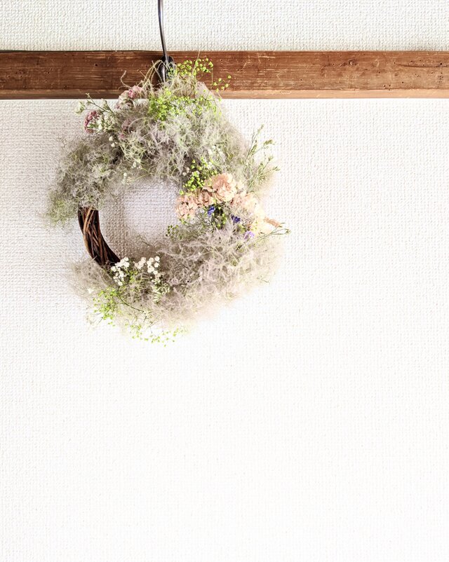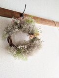 涼しげグリーンスモークツリー&スターチス&ライスフラワーなどさわやかドライフラワー・リース!