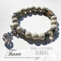 柔らかな色合いと独特の質感が心を和ませてくれると云われている北投石と厳選されてグレームーンストーンとNOLITAオリジナルメタルパーツで