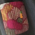 左右の裾、ポケットにいろいろな銘仙をあしらった