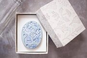 草花をモチーフに消しゴムはんこを彫り、はんこを陶土に捺しつけて凸凹の模様をつけた作品を制作しております。色を作る時の水一滴で雰囲気が変わり、仕上げ磨きのほんの…