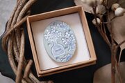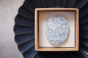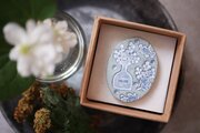 陶土にオリジナルの草花の消しゴムはんこを捺したブローチです。