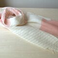 派手すぎないサーモンピンクが明るい印象のストールです。