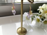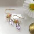 可愛らしいダイヤカットのピンクアメジストとマルチカラーのトルマリン、気持ち大きめボタンカットのモルガナイトも合わせて、女性らしいピアスにしました。
