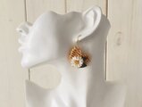 ラタンでハートの形に編んだベースにドライの葉と、染め花のデイジーをつけたピアスです。