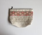 ベージュのざっくりとした生地にリボンテープ・レース、フランスのアンティークファブリックを組み合わせたポーチです。