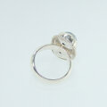 そのため、裏側は塞いでアームに石枠を接着するタイプのリングに仕上げました。