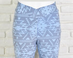 おしゃれなネイティブ柄と爽やかなブルーカラーがこれからの季節にぴったりなストレッチパンツ。