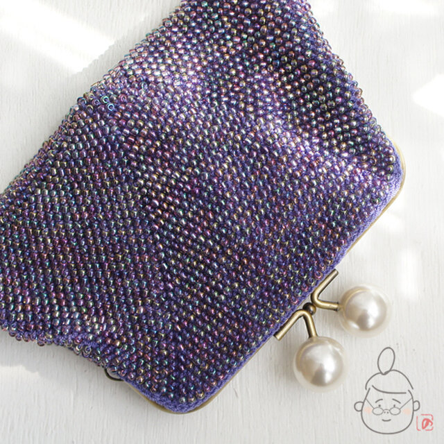 ばあば作☆☆さらに大きめパールのスクエアがま口 (京紫・1208)