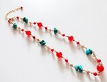赤メノウ(染) ターコイズ(染) サンゴ(染) メタルビーズ アーティスティックワイヤー メッキ金具(ゴールド色)