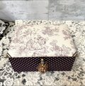 トワルドジュイ柄の生地とドット生地で作った裁縫箱です。