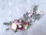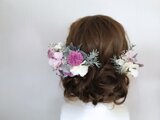 ナチュラルなグリーンの中に、くすみパープルで上品さを加えたヘッドドレスのセットです。