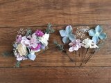 メインのヘッドドレスはコームタイプで、他はUピンで仕上げておりますので、ヘアスタイルに合わせて好きな位置にお好きな本数を付けることが可能です。