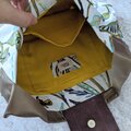 中袋はマスタード色のコットン生地でポケット2つ付いています。