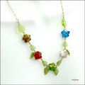 ガラスのお花達ネックレス【とんぼ玉/チェコリーフ ビーズネックレス】 《ビーズアクセサリー》