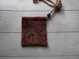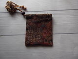 ちりめんの着物地の曼荼羅柄の小さな巾着袋です。裏地はなく1枚仕立てです。