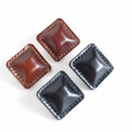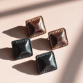 革を幾重にも重ね、彫刻、削り、ピラミッド型に造形したものを芯材にし、革で包んでピアスにしました。