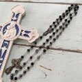大きめサイズのクロスがとても存在感のあるロザリオです。