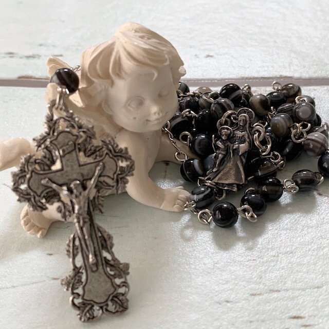 遅くなり大変申し訳ありませんm(_ _)m いつもとても素敵なロザリオをありがとうございます(*^^*)今回もセンターメダイと十字架と石のセンスがとても良くバランスが素敵です!大切にします。ありがとうございますまたよろしくおねがいします。