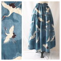 【和柄】はんなりと個性的なティアードスカート(飛翔:ブルー)