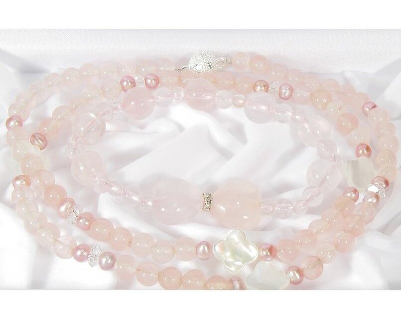 ローズクォーツ / 本真珠(淡水) / 貝パーツ(白蝶、マザーオブパール) /