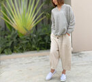 無造作に着てもエレガント。どんなシーンにも応用の利く優れものですね。ガーゼ素材が心地よく感謝です。