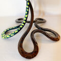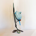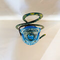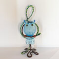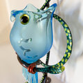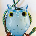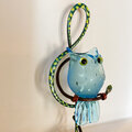 ト音記号のアームベースにガラスのフクロウさんがとまっています。フクロウの目はバーナー細工で製作したオリジナルグラスアイを使っています。細部まで作者の物作りエッセンスが込められた作品です。(グリーンアームはト音記号部のお色がグリーン系です)