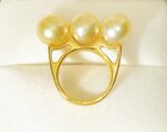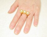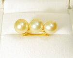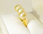 照りがとても美しく、大粒でゴールデン色の南洋真珠を3粒留めた指輪です。枠はSV925製(24K張り)です。