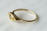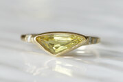 光や角度によって色が変わって見えて楽しくも美しい指輪です。サイドの小さなダイヤもキラキラしてかわいいです。嬉しくて毎日つけています。ありがとうございました。