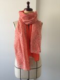 顔をパッと明るく見せてくれるオレンジ系のプリント。