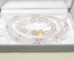 輝きのとても綺麗なカット水晶とラウンドの水晶、ナチュラルカラーの本真珠(淡水)を使ったネックレスです。ヒキュウと玄武が彫られた水晶を使ったブレスレットがおまけで付きます。