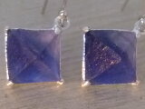 カラーレスとコバルトブルーのバイカラー*ニューメキシコ州産フローライト八面体のシンプルなシルバーピアスです*フローライトは劈開方向がハッキリしているため加工穴への金具差し込みでは力が加わった際に割れてしまう可能性が高いのでそれぞれに合わせた石枠を作り接着剤に頼らずセット致します(表面仕上げ確定後に石留め致します)*このフローライトは白熱灯光や夕日で紫色にカラーチェンジします*ひとつとして同じ物が無い天然石による1点モノをお楽しみ下さい*通常、黒化遅延処理を施しますが銀そのものの変化をお好みの場合は処理不要とお申し付けください*黒化防止ロジウムコーティングご希望の場合は承ります(別途1000円)