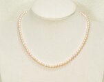 淡いピンクの本真珠(淡水)のネックレスです。真珠の色合いはナチュラルカラーです。