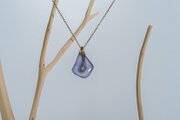 台形のような楽しい形のブルーカルセドニーをネックレスに仕立てました。