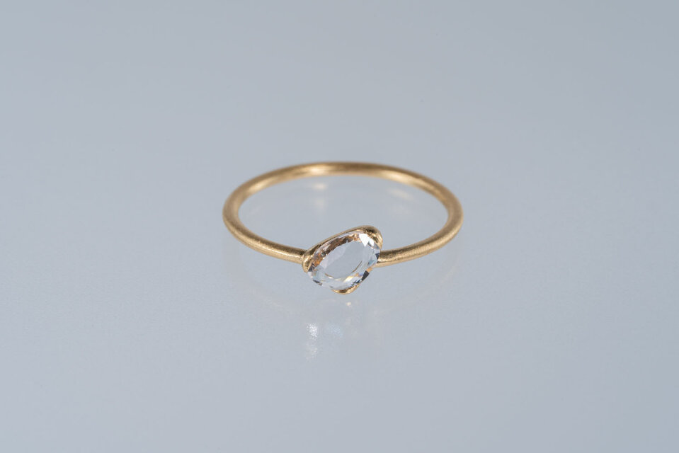 無色のサファイアをシンプルなリングに仕立てました。