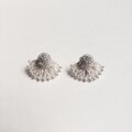 【small】フリルレース ガラスビーズ イヤリングorピアス(シルバー)No.20-0314