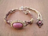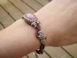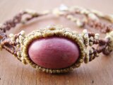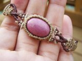 天然石(パワーストーン) ピーモンタイトをロウビキ紐を使ってマクラメ編みしたブレスレットです。