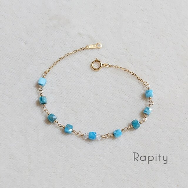 ブルーアパタイトがきらりと輝き、大人可愛いブレスレットです♪
