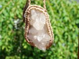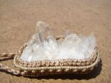 天然石(パワーストーン)水晶の原石をロウビキ紐を使ってマクラメ編みしたネックレス(ペンダント)です。