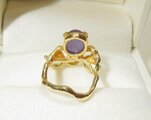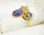 色合いの濃いタンザナイトとミスティック・トパーズを留めた指輪です。