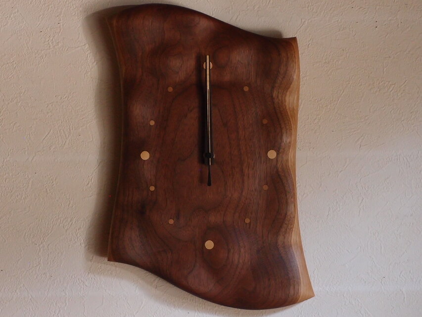 森の空気感を感じるとっても素敵なお作品です!電波時計ですが、枝の針が時をやわらかく知らせてくれるという、少しのゆとりがあるところが魅力的です!小鳥の手触りも抜群で、杢目や彫りがより立体的に感じます!出逢いに感謝と感激をしております!