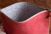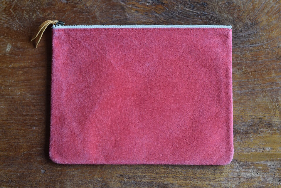 豚革で作ったファスナーポーチです。けっこう前に作ったものなので、色あせがあり、お安くしています。