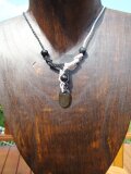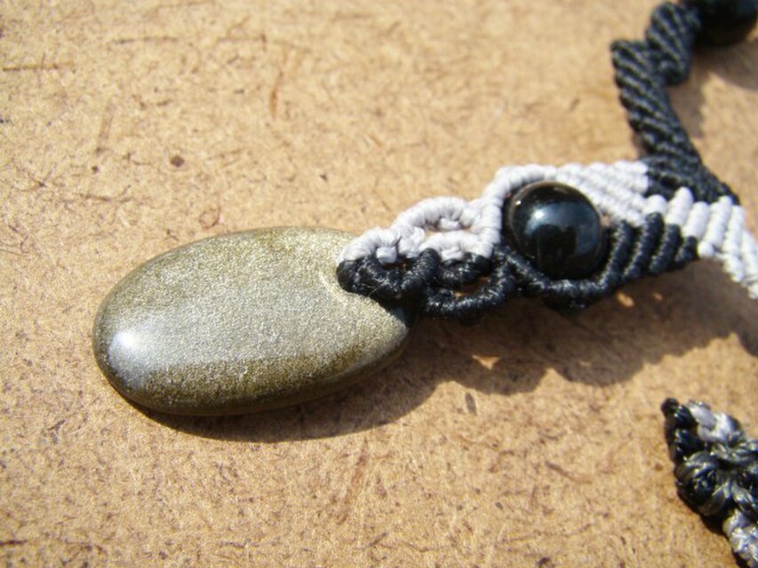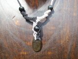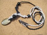 天然石(パワーストーン) オブシディアンと水晶をロウビキ紐を使ってマクラメ編みしたネックレス(ペンダント)です。