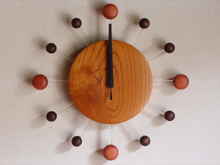 時刻マークには、はくじとブラックウォールナットをアクリルの丸棒でつなげてみました。
