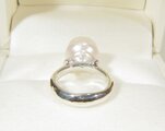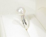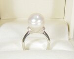 照りの強い南洋真珠と輝きの美しい再生ダイヤモンドを、SV925製の枠に留めた指輪です。