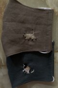 ネイビーとベージュグレイの生地にそれぞれシャム猫と三毛猫を刺しゅうしています。