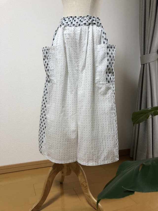 此方は爽やか白絣の裏地付き、ワイドポケットガウチョ、Mサイズになります。