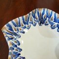 流れる釉薬が孔雀の羽根の様なデザインの中鉢です。