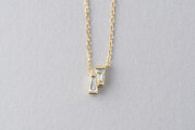 台形型のテーパーバケットカットのダイヤモンドを2つ組み合わせたペンダントです。