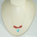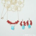 素材:アリゾナ産スリーピングビューティーターコイズAAA スライス、紅珊瑚 チップ、その他すべて14kgf