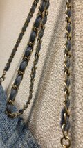 色味を抑えるため、共布の紐をチェーンに通してみました。